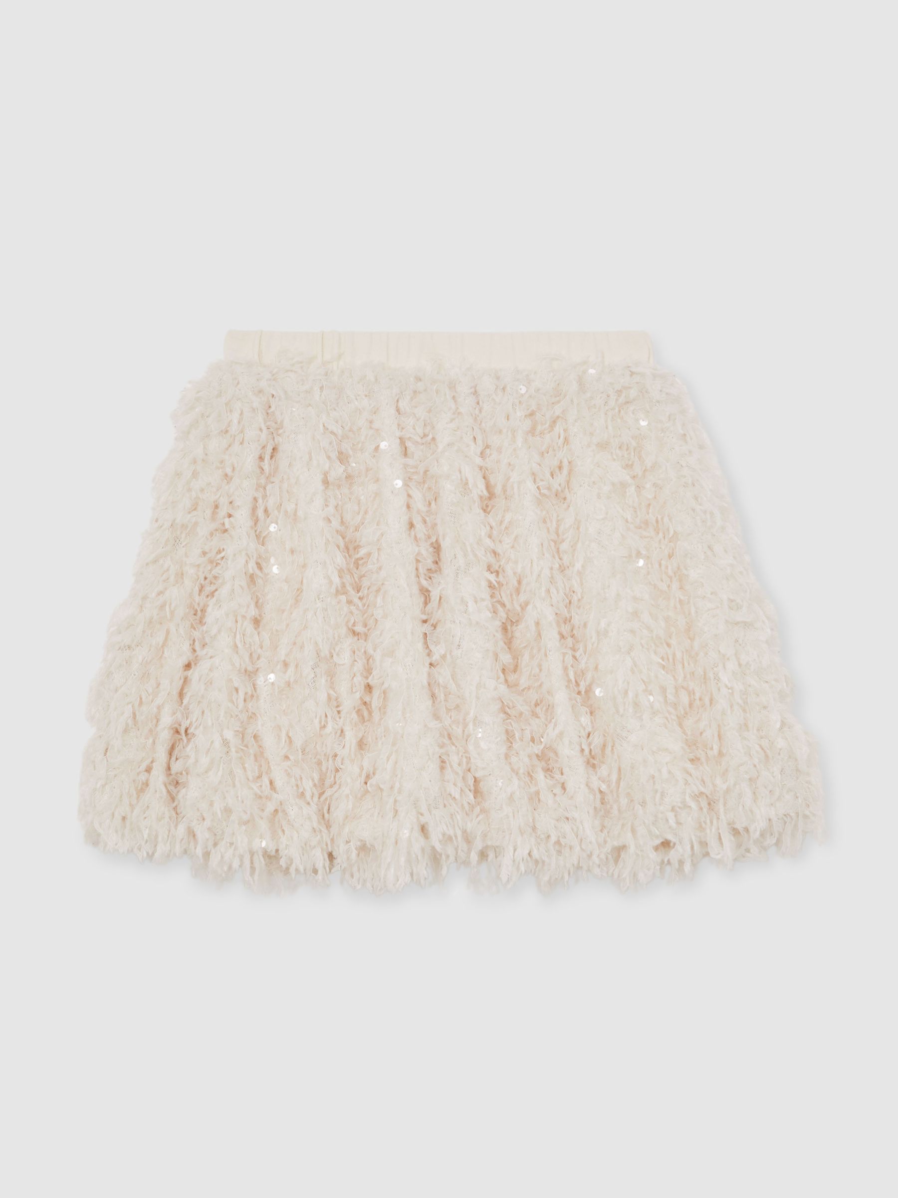 13-14 yrs Fluffy Sequin-Embellished Skirt in Ivory