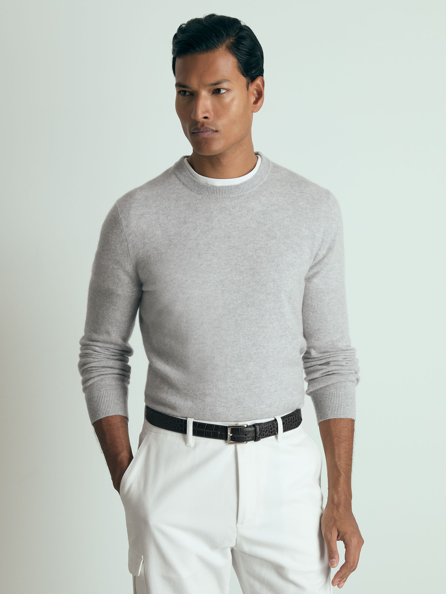 Atelier Cashmere Crew-Neck Jumper in Soft Grey Melange