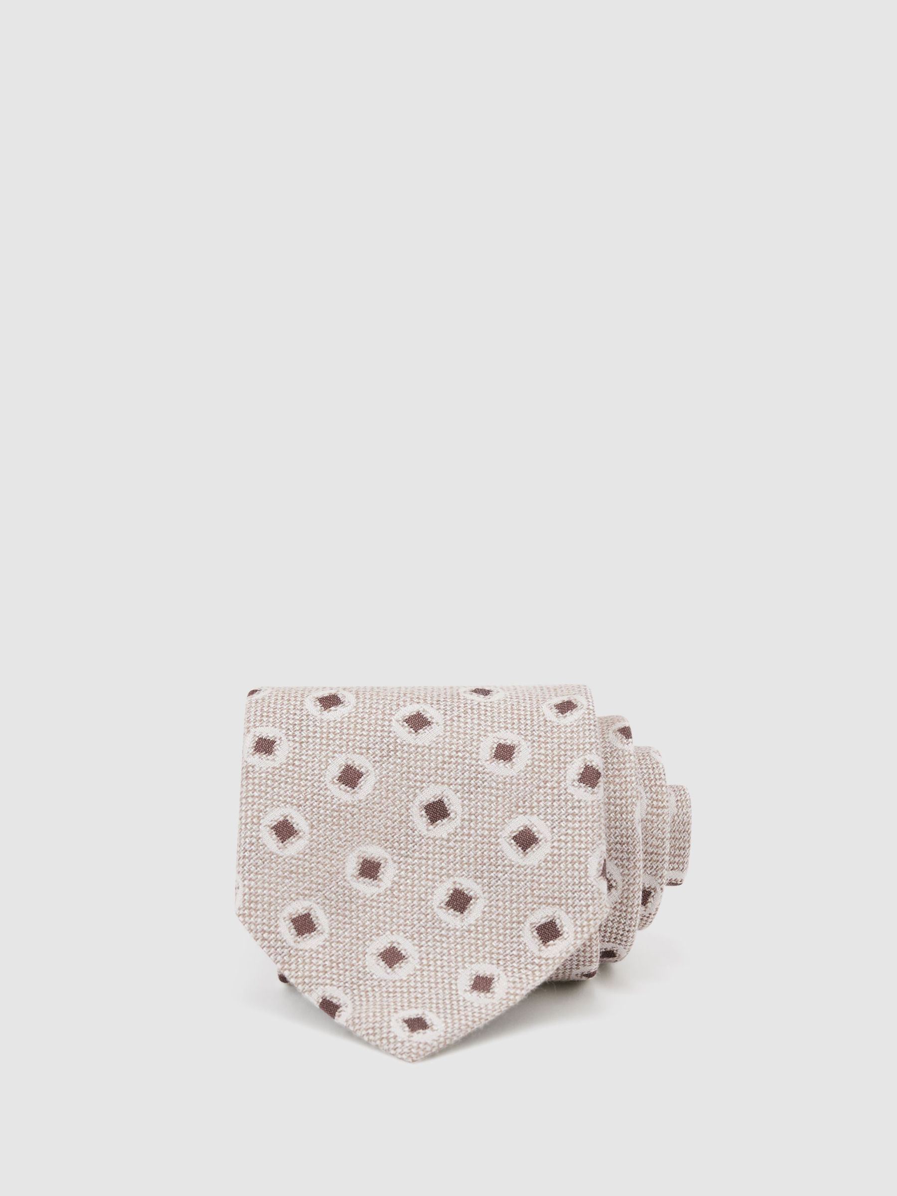 Cotton-Silk Square Medallion-Print Tie in Oatmeal / Chocolate Brown