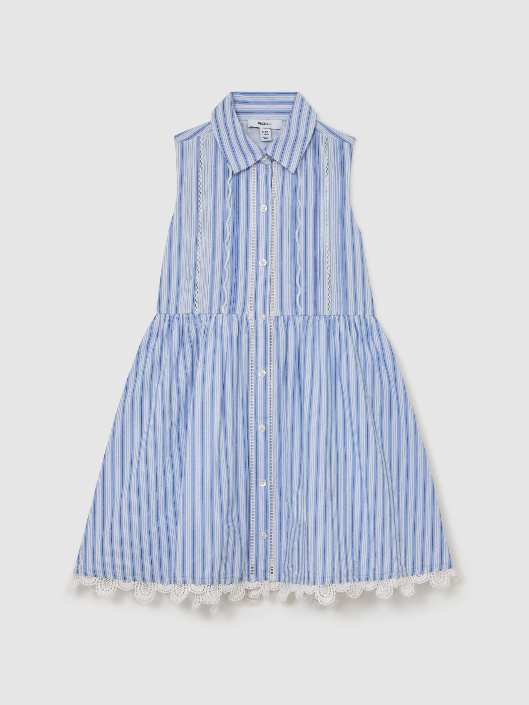 Cotton Striped Lace-Trim Shirt Dress in Blue/White