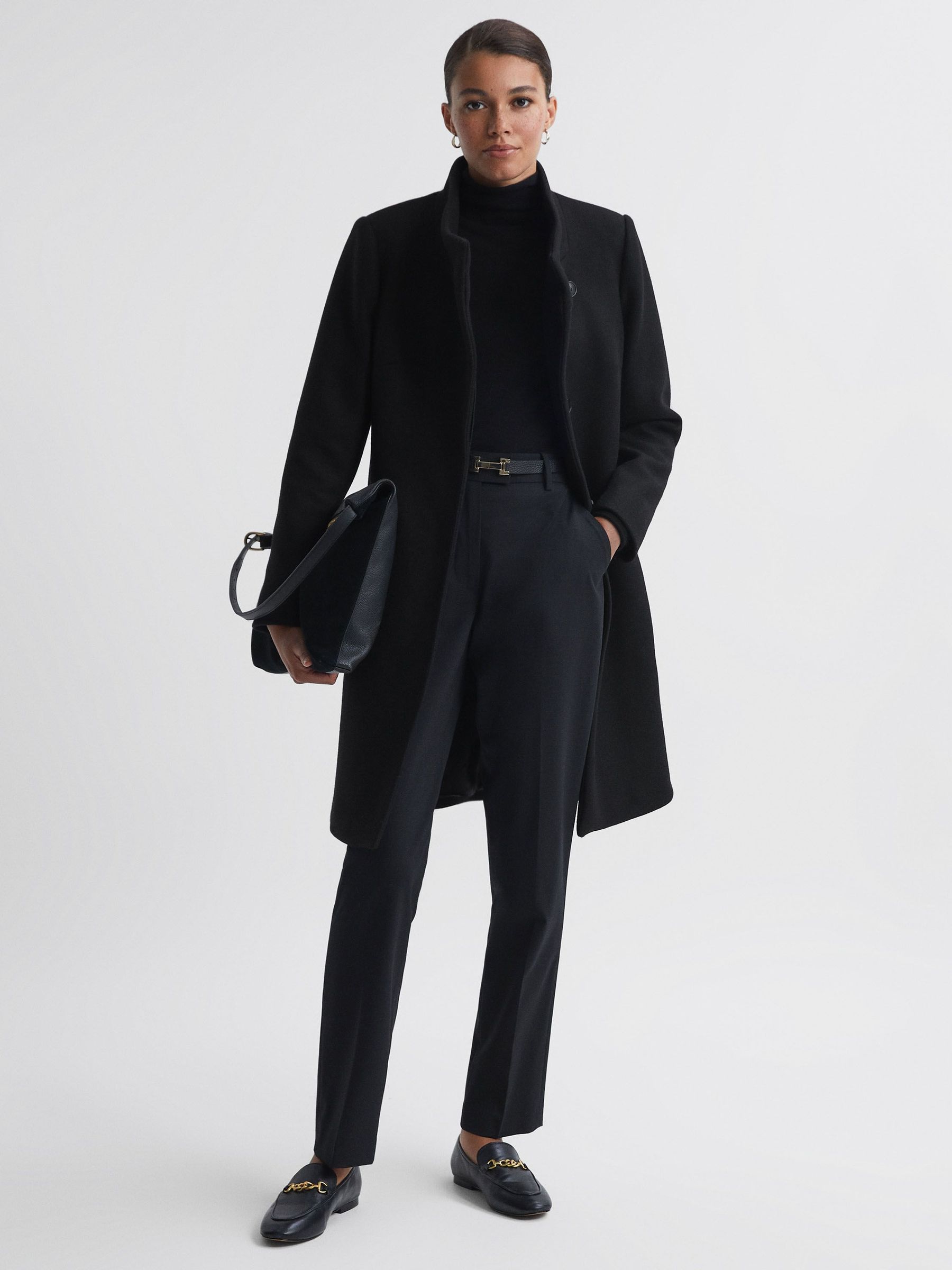 Wool Blend Mid-Length Coat in Black