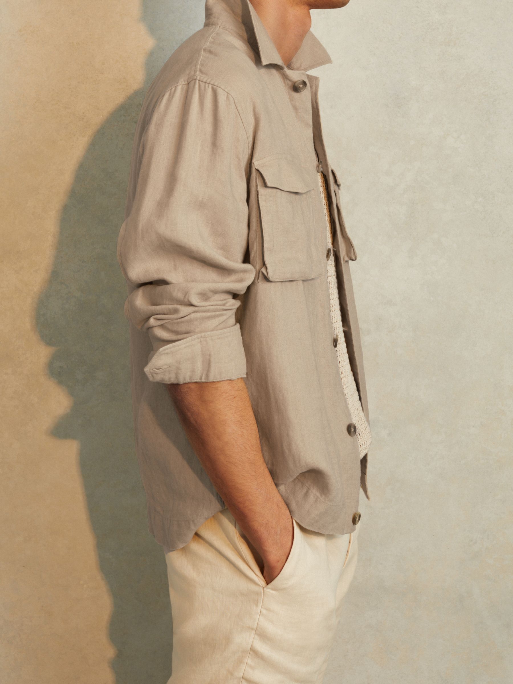Stretch-Cotton Twill Twin-Pocket Overshirt in Stone