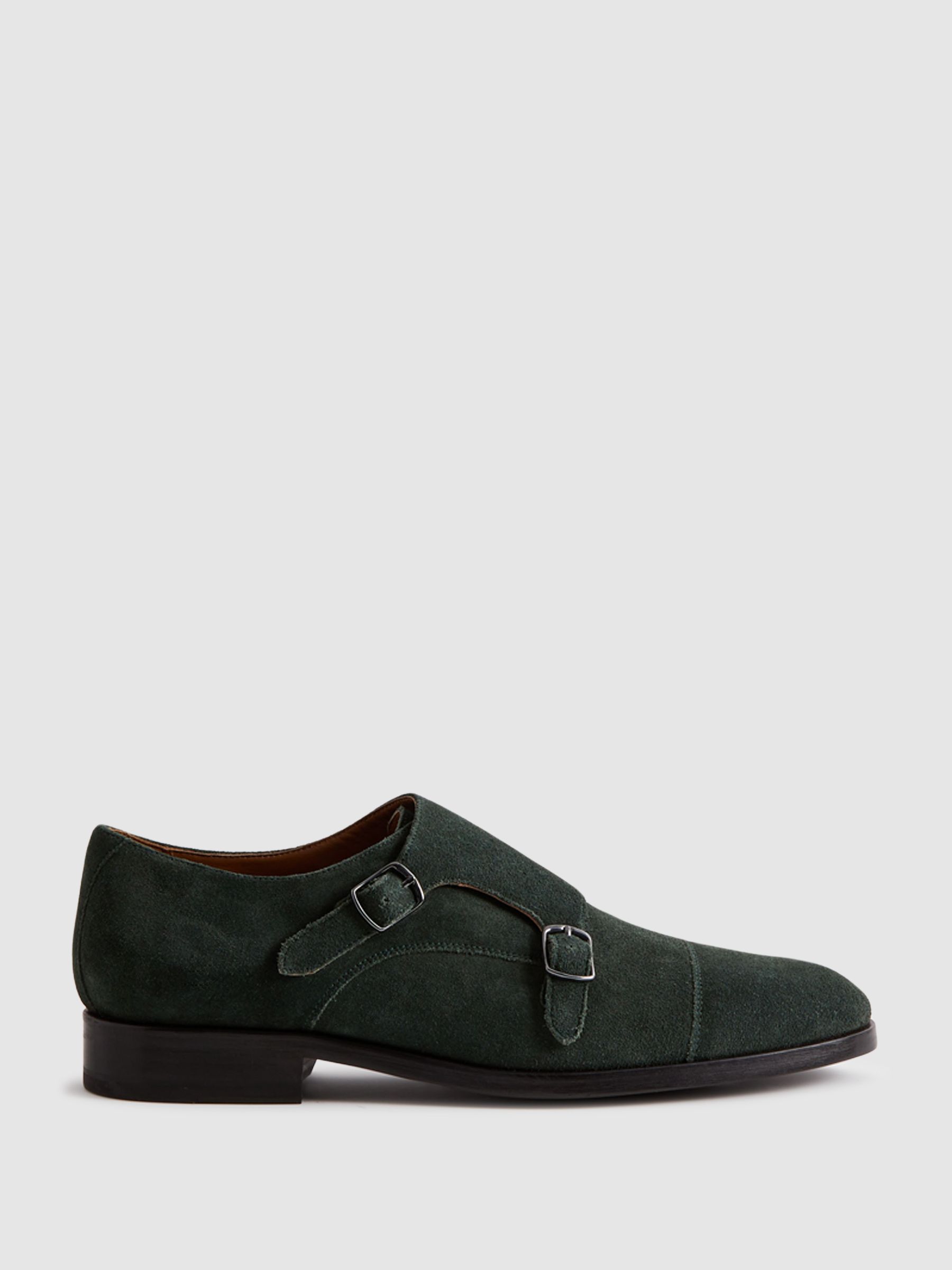 Suede Double Monk Strap Shoes in Forest Green