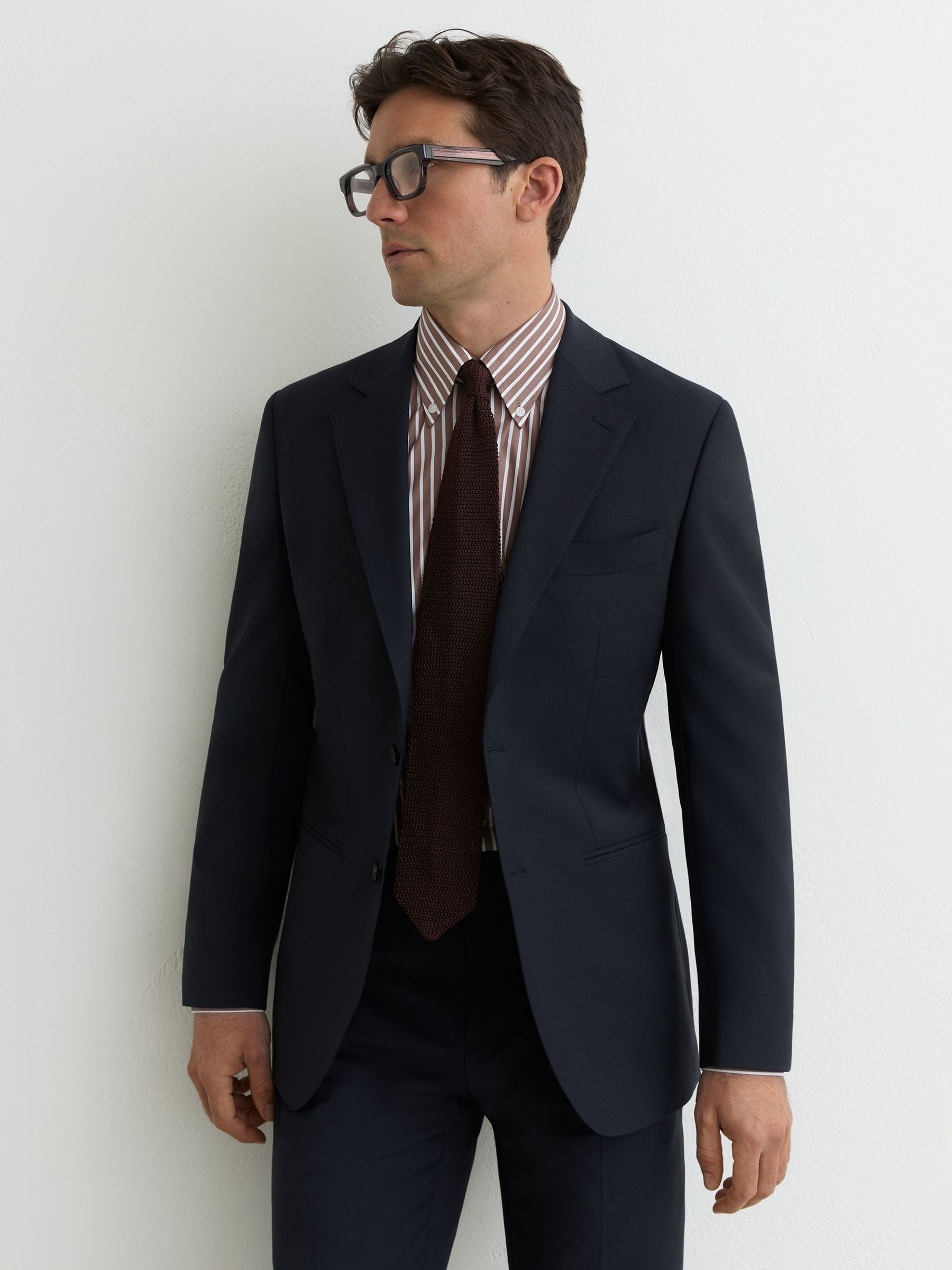 Double-Breasted Wool-Blend Tailored-Fit Suit Jacket in Navy