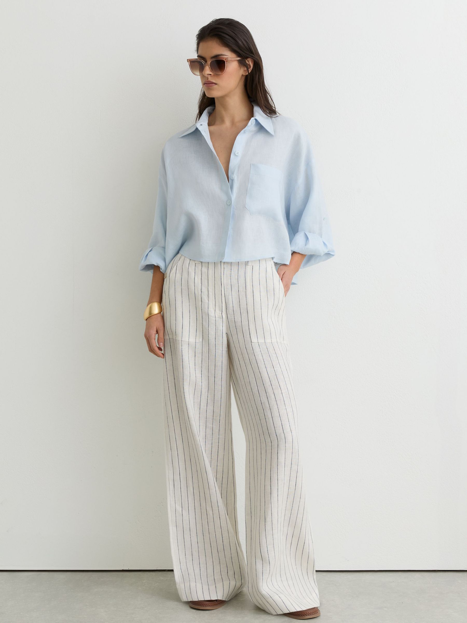 Linen Wide-Leg Trousers in White