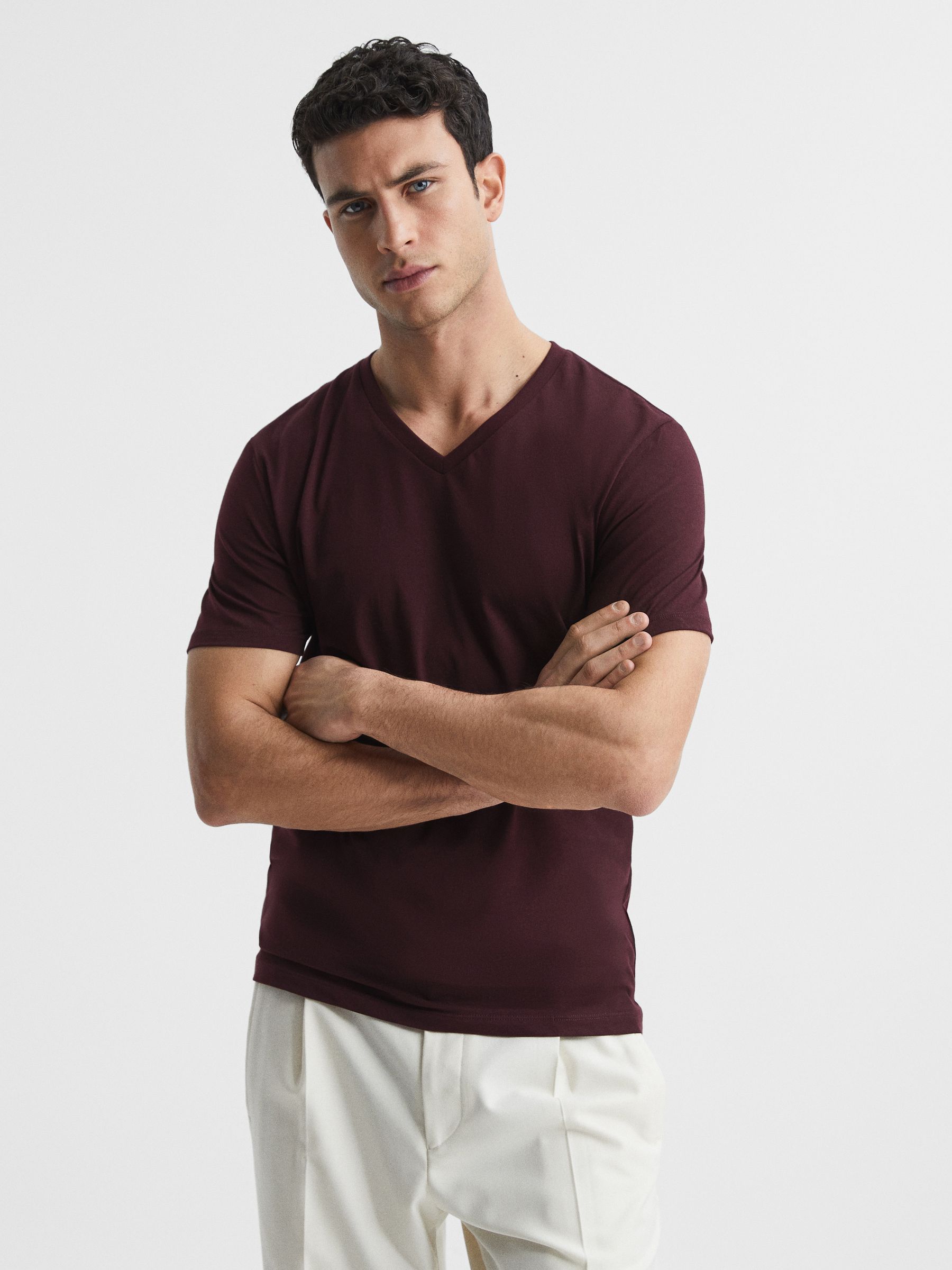 Cotton V-Neck T-Shirt in Bordeaux
